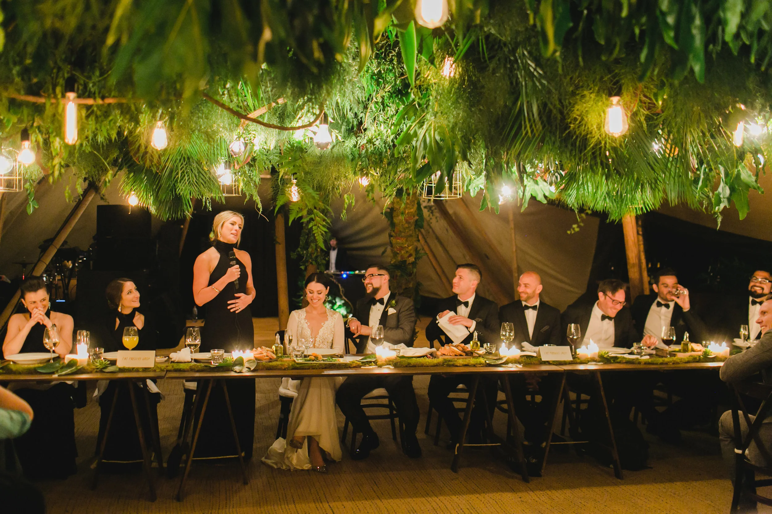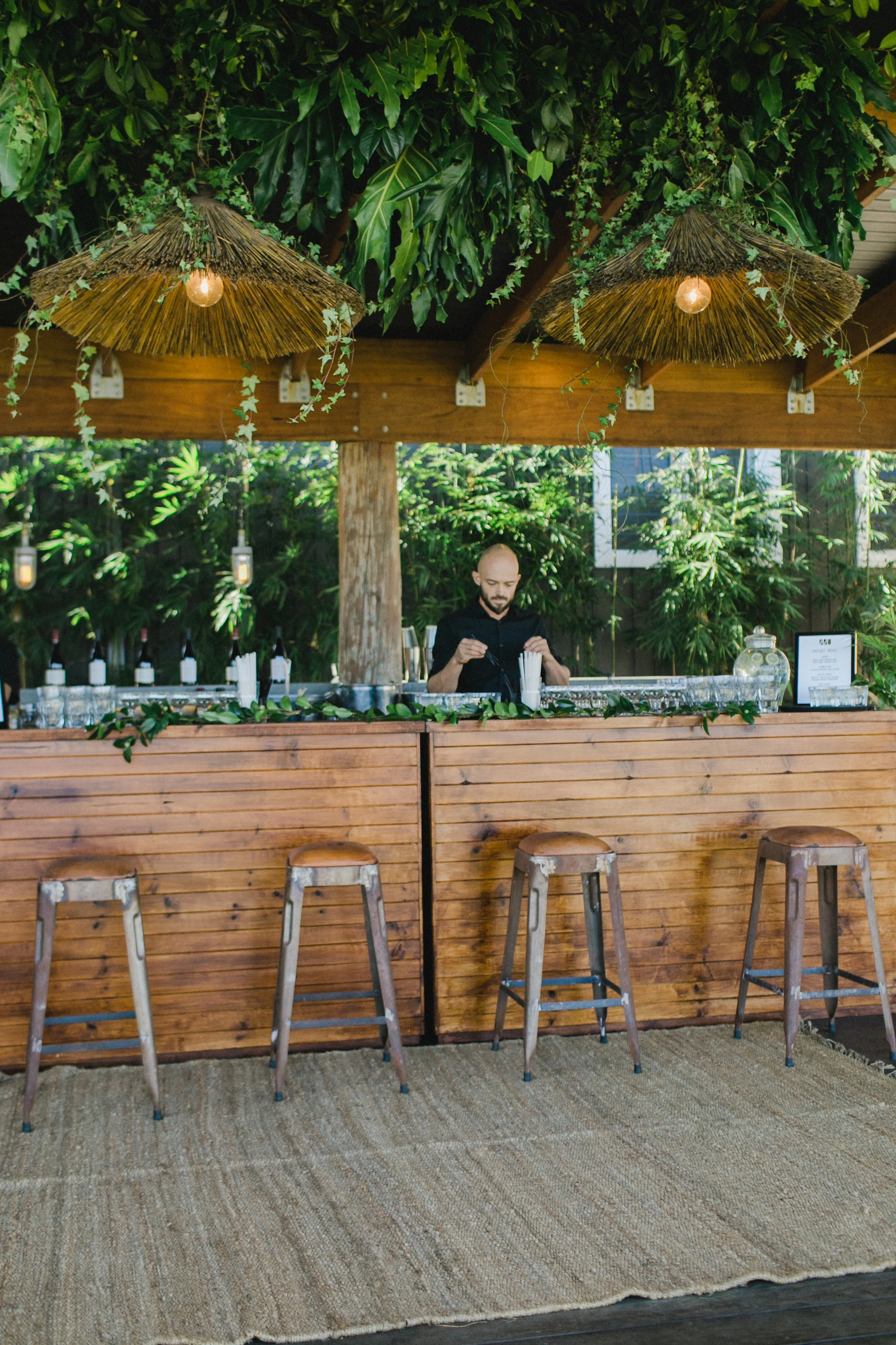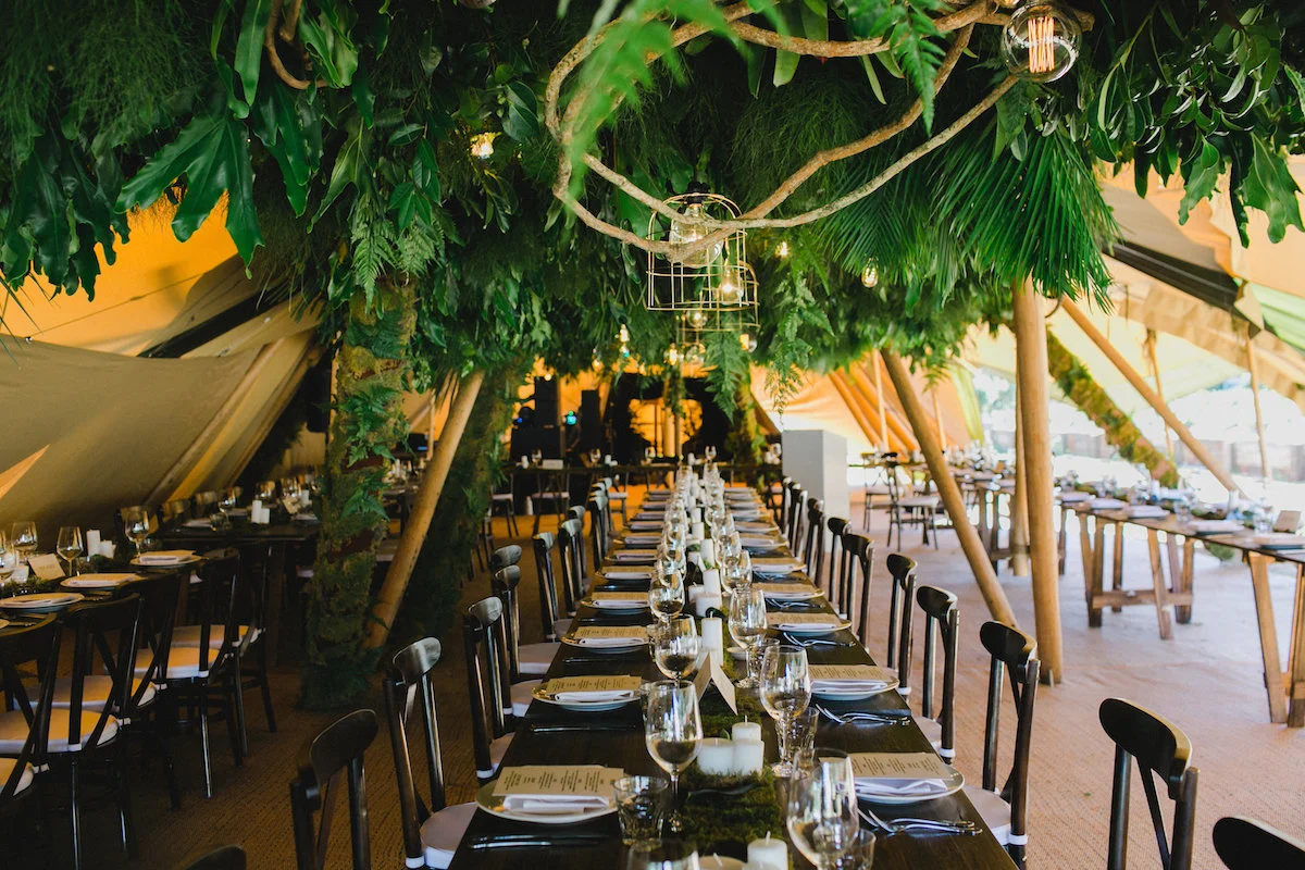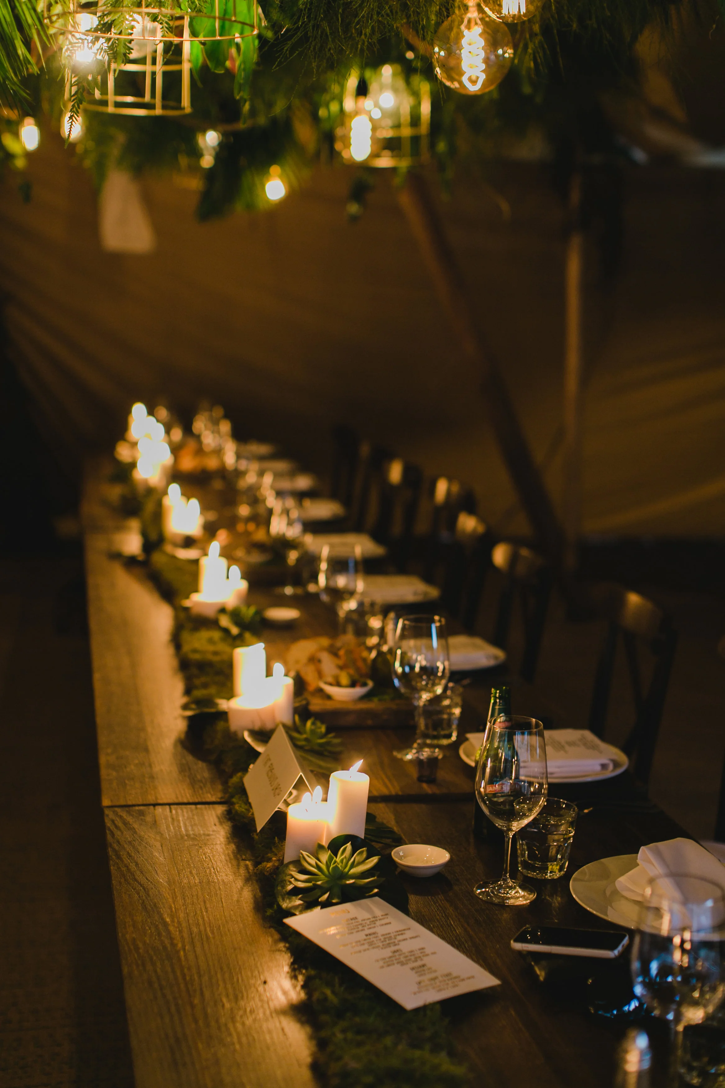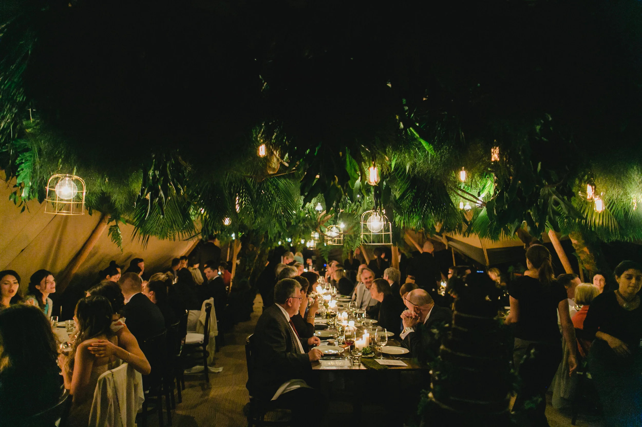 Amy was adamant that there was not a single flower at the wedding; instead an all green affair was created! Over 70 square metres of lush tropical rainforest were installed in three Nordic tipis, rich greenery and relaxed natural cocktail areas were arranged around The Grove. A smaller tipi was transformed into a ‘pop up bar’ offering the perfect chill zone for guests to kick back relax and enjoy a cocktail.