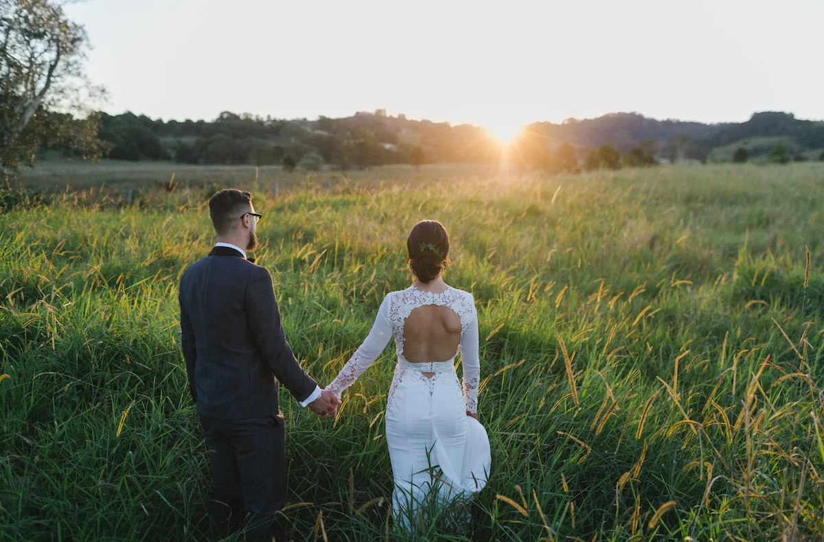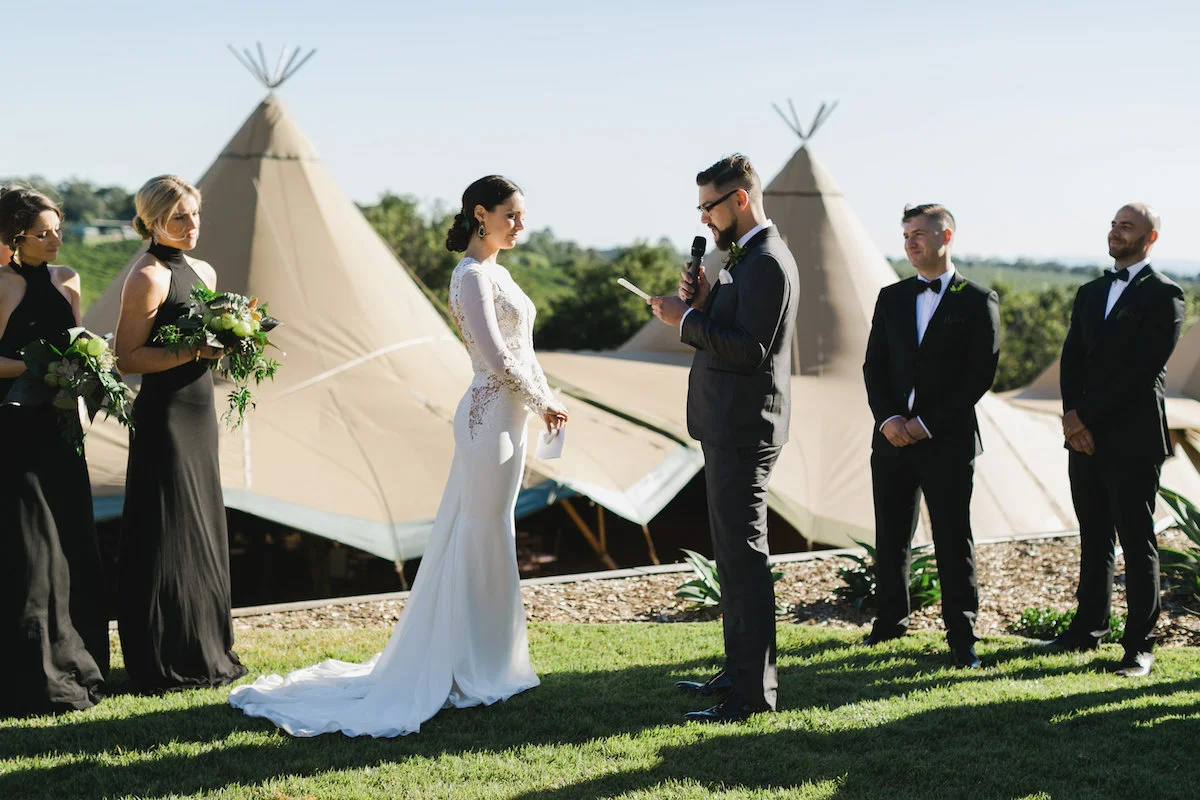 Gracefully set on a high hill overlooking the lush Byron Bay hinterland, complete with its own macadamia plantation, The Grove set the stage Amy and Myles’ spectacular wedding. The couple living abroad, enlisted in the styling and design services of The Wedding Shed to flawlessly execute their rainforest submersed wedding.