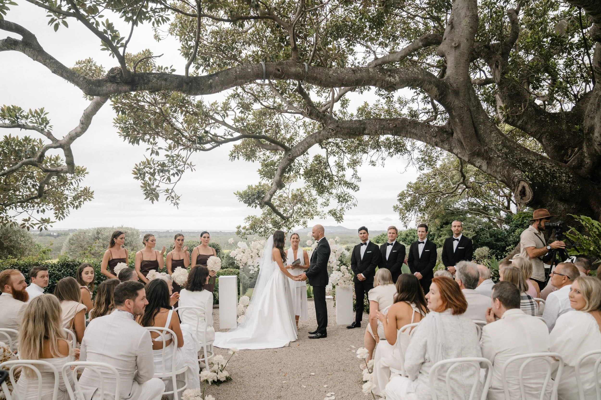 Missy & Adam’s ceremony was set underneath a 150-year-old Moreton Bay fig, and featured a backdrop of rolling hills, Julian Rocks, and the Byron Bay lighthouse.