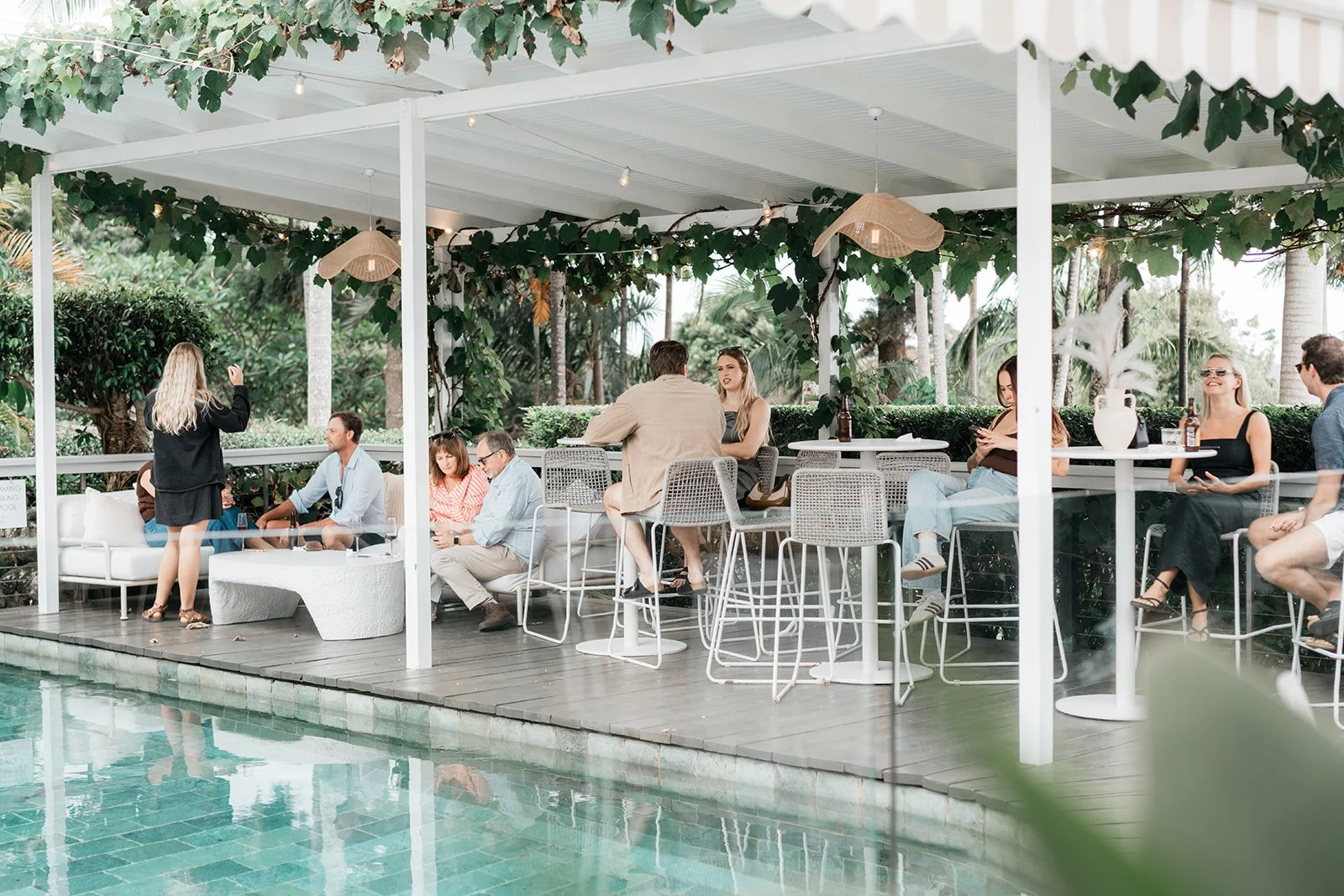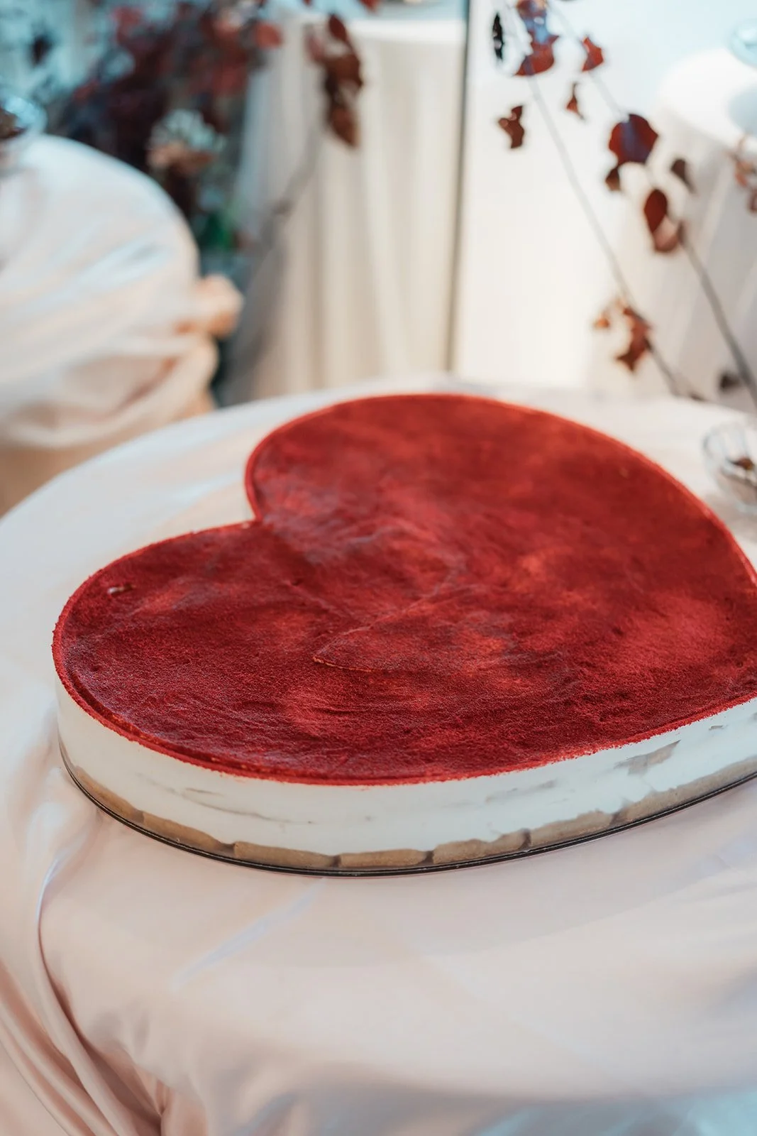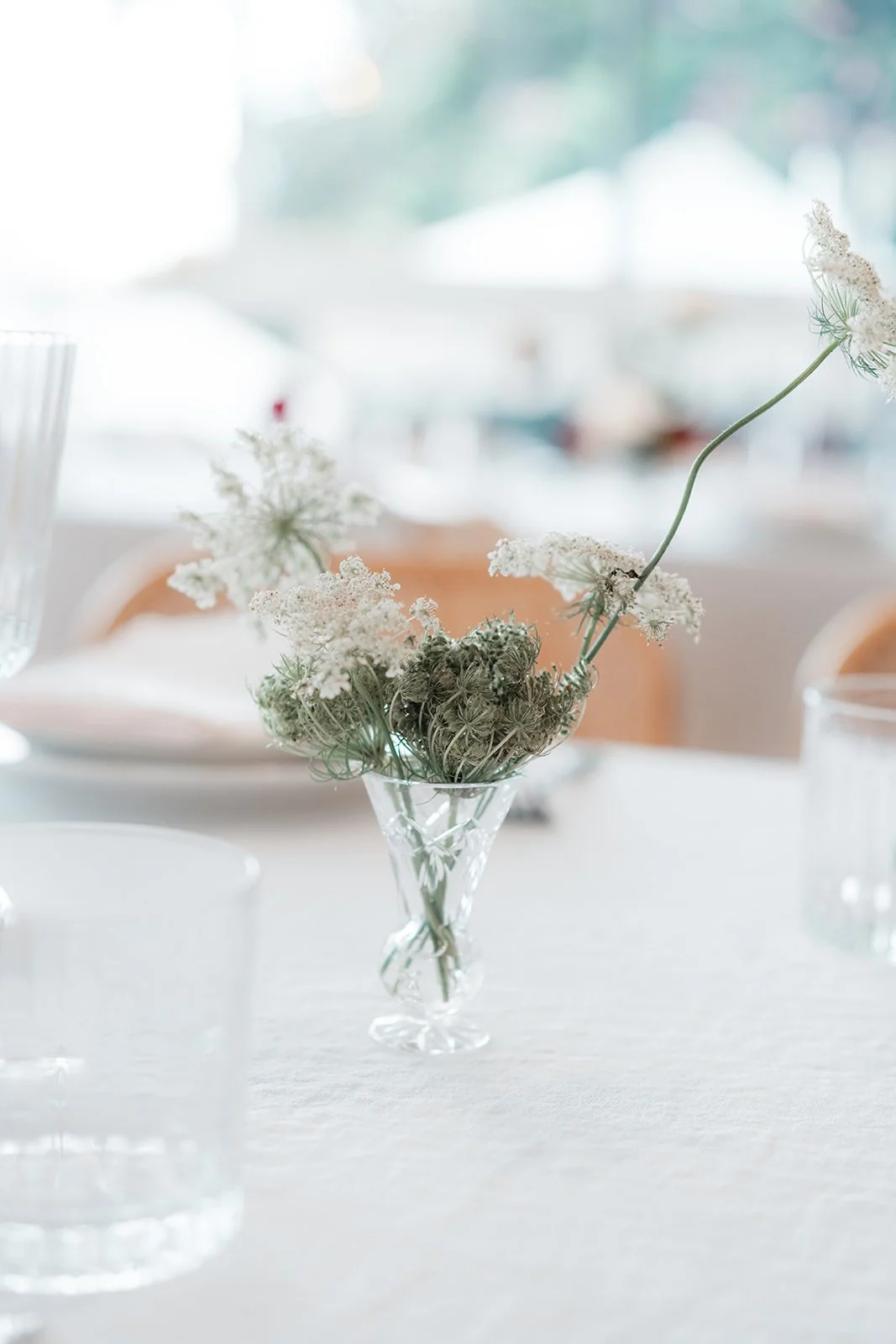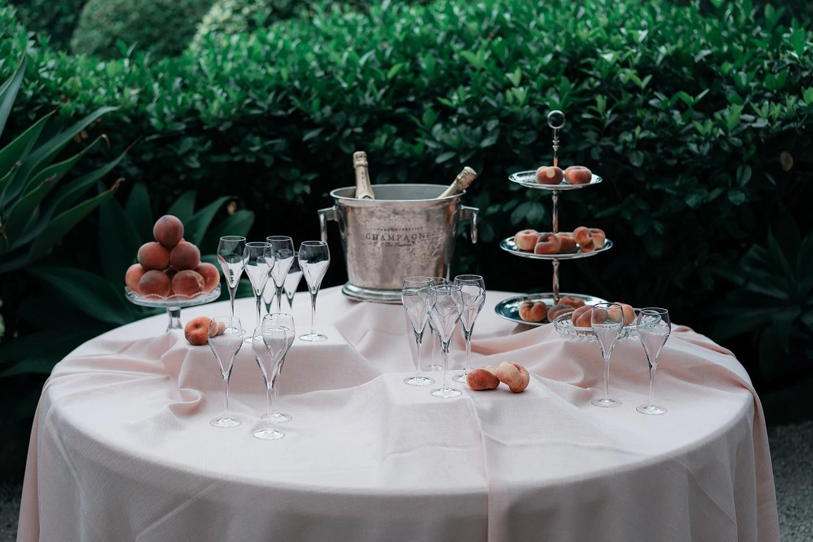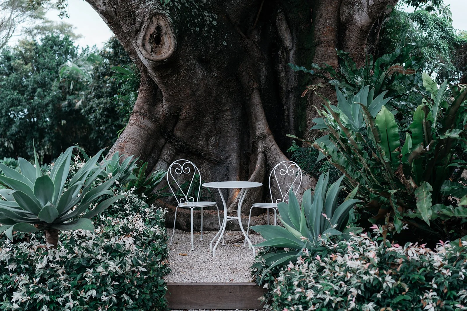Styling the Summer Venue Open Day we wanted to achieve a look of modern European romance, blending a clean, monochromatic base with rich, seasonal accents. The overall aesthetic centered on elevated organic textures, pairing the structural lines of white bentwood chairs and mirrored ceremony plinths with the softness of billowed ceiling draping and draped linen. This contrast created a space that felt architectural and high-end, yet remained grounded by the lush, garden-inspired surroundings of the Fig Tree.